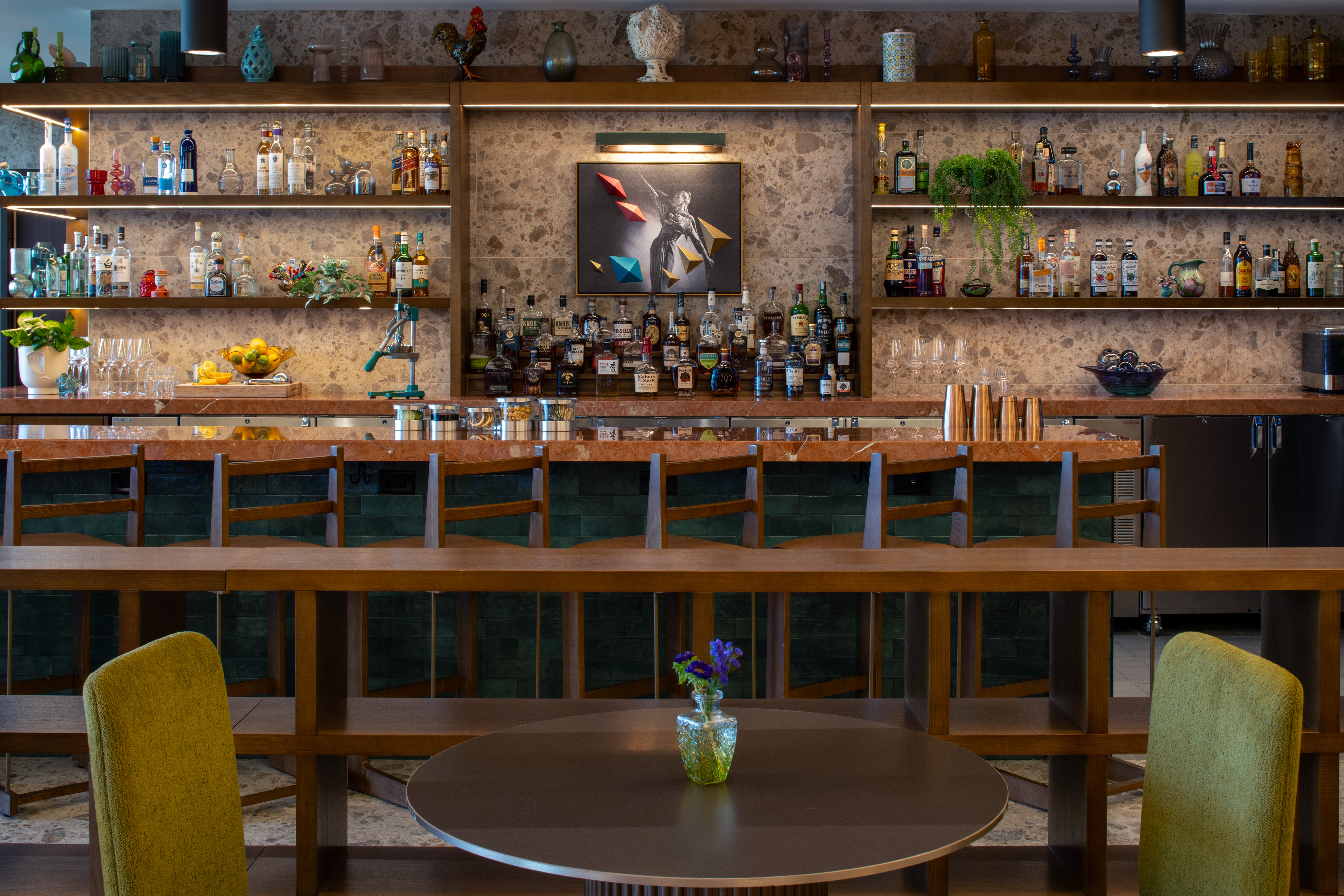 All Vyne bar & restaurant bills and snacks from The Market can either be charged to the room or cashed out with your server. If charged to the room, it will pull from the incidental hold and you will receive points to the Marriott Bonvoy account on file.